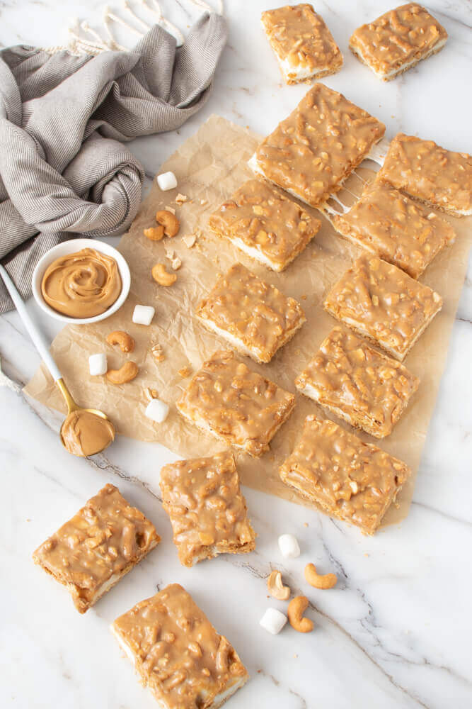 - BAKE 15 minutes or until lightly browned. Top evenly with marshmallows; bake an additional 2 minutes or until marshmallows begin to puff. Remove from oven; cool.